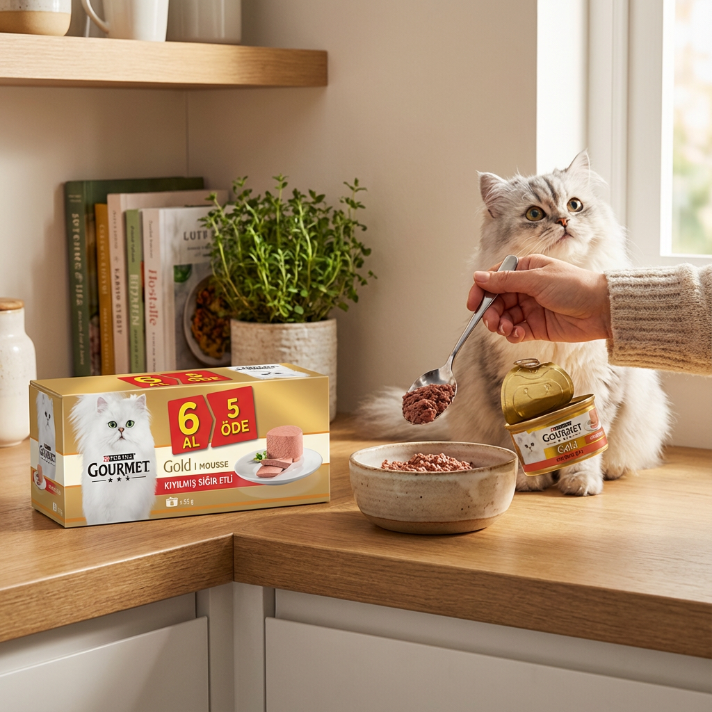 Gourmet Gold Kıyılmış Sığır Etli Kedi Konservesi 85 gr 6 Al 5 Öde için 3 değerlendirme