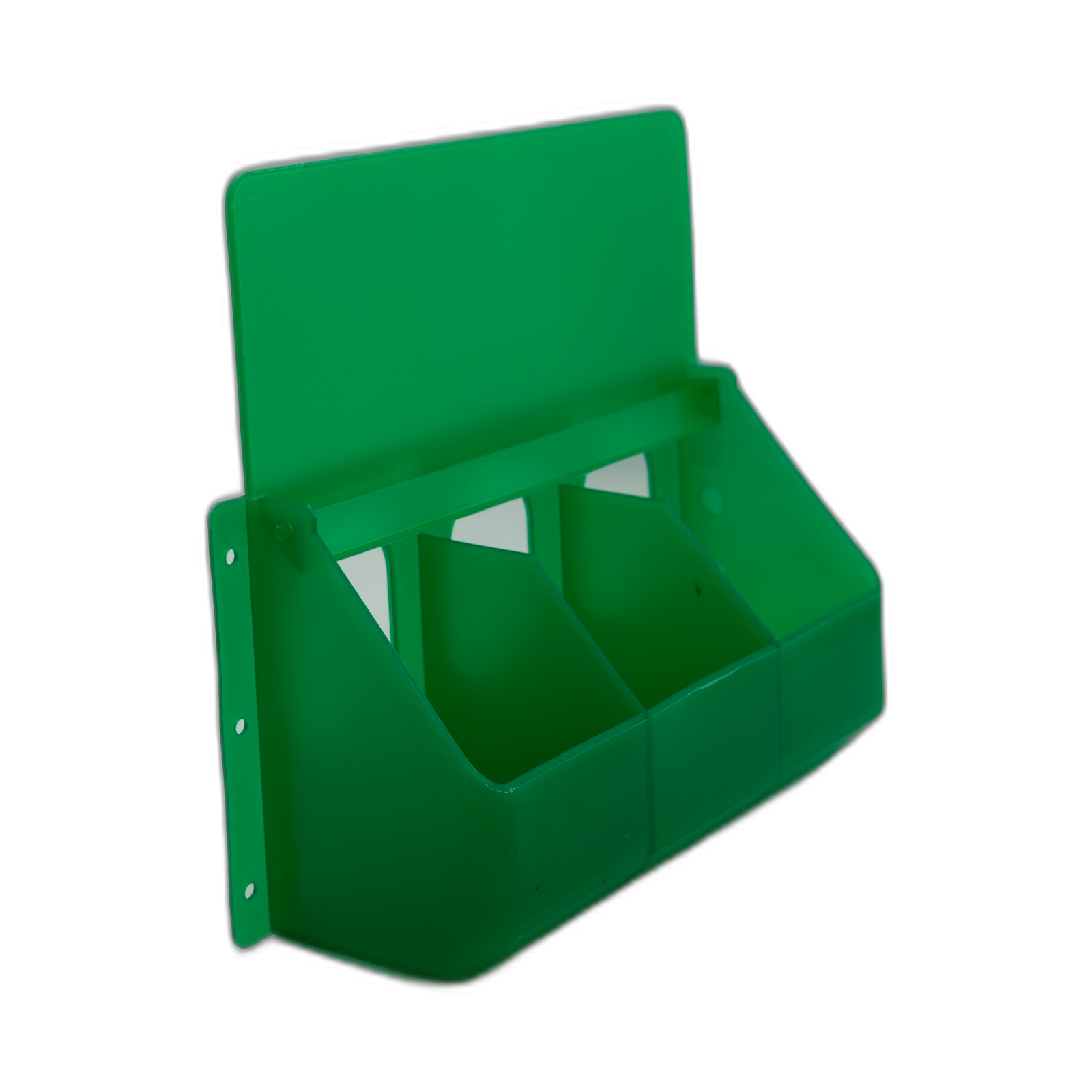 - 3 Gözlü Pratik Tasarım: Yem, mineral ve ek gıdaları aynı kapta fakat ayrı bölmelerde sunarak alan tasarrufu sağlar.