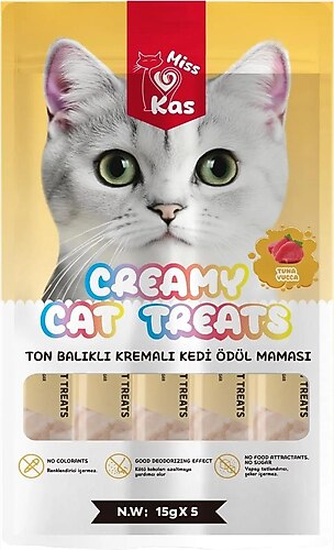 Miss Kas Ton Balıklı Kremalı Kedi Ödül Maması 15gx5 için 2 değerlendirme