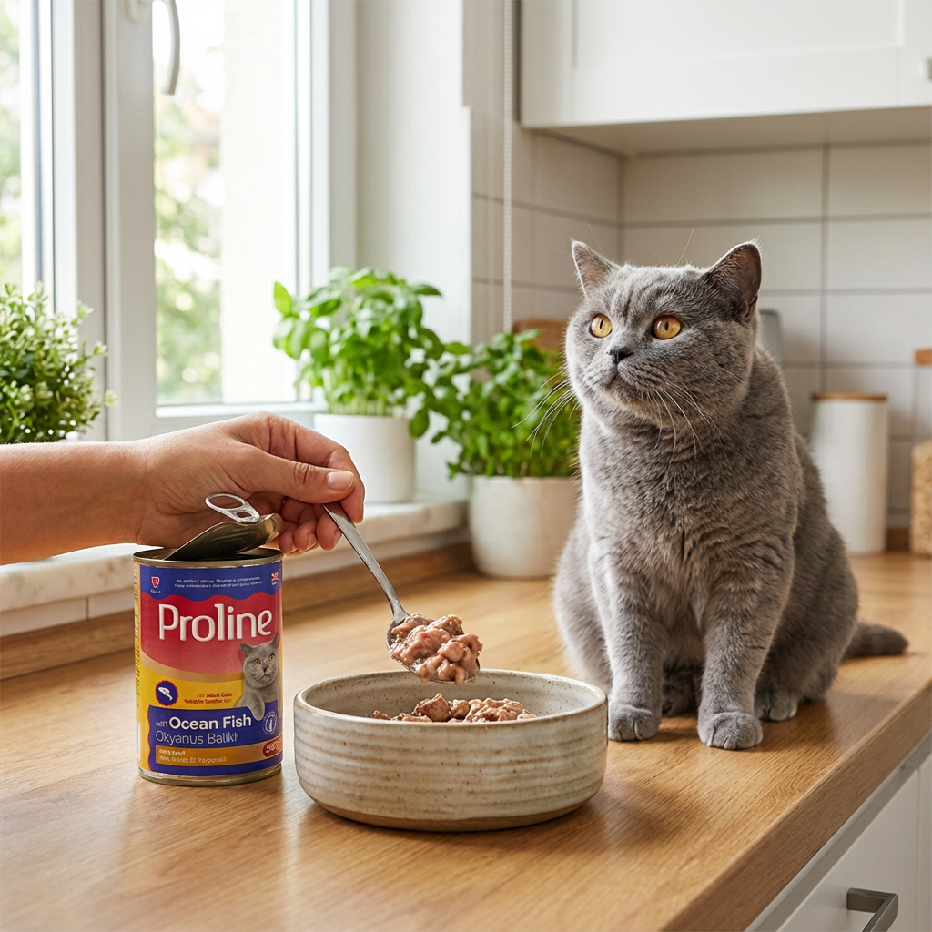 Proline Okyanus Balıklı Pate İçinde Et Parçacıklı Konserve Kedi Maması 395GR x 12 Adet