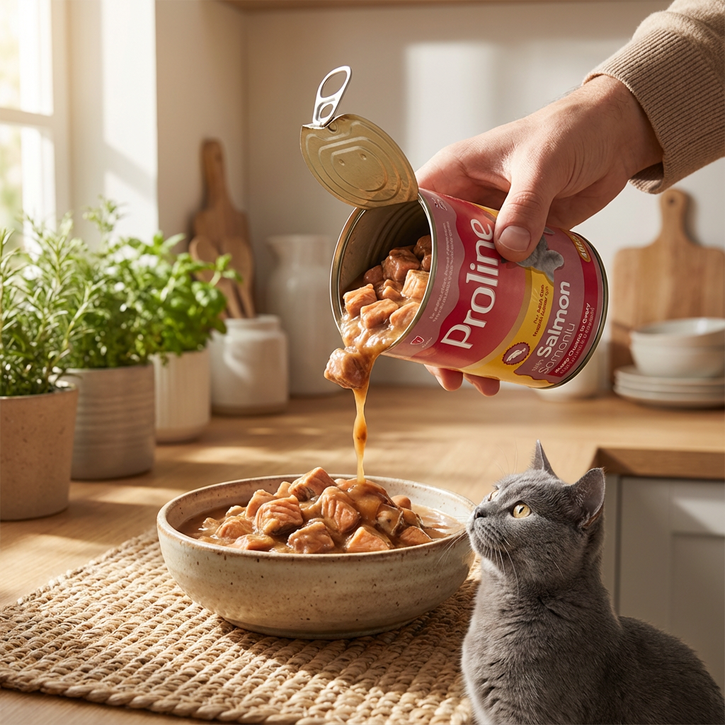 Proline Somonlu Sos İçinde Et Parçacıklı Konserve Yetişkin Kedi Maması 400GR x 12 Adet