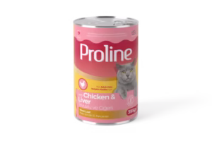Proline Tavuklu ve Ciğerli Pate İçinde Et Parçacıklı Konserve Yetişkin Kedi Maması 395GR x 12 Adet