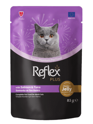 Reflex Plus Jöle İçinde Et Parçacıklı Somonlu & Ton Balıklı Yetişkin Kedi Maması, sevimli dostunuzun damak tadına hitap eden, üstün lezzet ve besleyiciliği bir araya getiren premium bir öğün seçeneğidir. Kedilerin asla hayır diyemeyeceği gerçek somon ve ton balığı parçacıklarının, nefis bir jöle kıvamı ile buluştuğu bu özel formül, yetişkin kedilerin günlük enerji ve besin ihtiyacını karşılamak üzere özenle hazırlanmıştır.