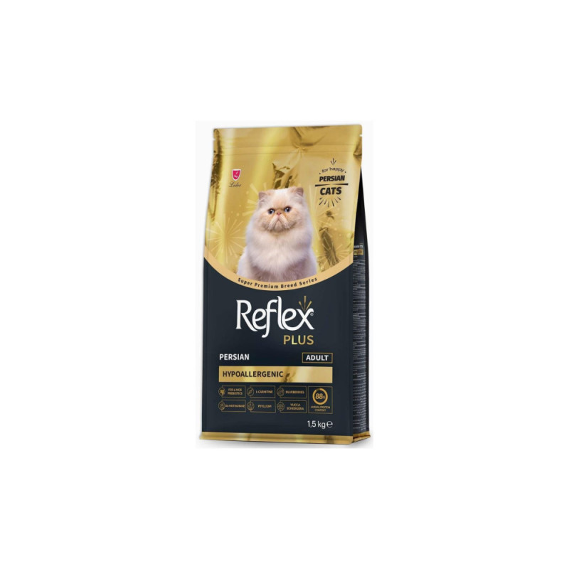 Reflex Plus Persian Yetişkin Kedi Maması 1,5 Kg, asil duruşları ve uzun tüyleriyle bilinen İran kedilerinin (Persian) tüm beslenme ihtiyaçlarını karşılamak üzere özenle formüle edilmiştir. Bu premium mama, kedinizin biyolojik gereksinimlerine tam uyum sağlayarak sağlıklı ve mutlu bir yaşam sürmesine katkıda bulunur.