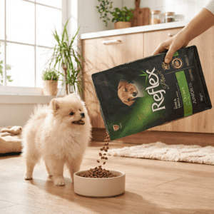 Reflex Plus Tavuklu Mini ve Küçük Irk Yavru Köpek Maması, 2 – 12 ay arası mini ve küçük ırk yavru köpeklerin büyüme ve gelişim ihtiyaçlarına uygun olarak özel formüle edilmiştir. Yüksek kaliteli tavuk proteini ile kas ve kemik gelişimini destekler, dengeli yağ oranı sayesinde enerji ihtiyacını karşılar. Omega 3 ve Omega 6 yağ asitleri, deri ve tüy sağlığını güçlendirir ve parlak görünmesini sağlar. Prebiyotikler sindirim sistemini desteklerken vitamin ve mineral dengesi bağışıklık sistemini güçlendirir. Reflex Plus Tavuklu Mini ve Küçük Irk Yavru Köpek Maması, yavru köpeğinizin her öğünde sağlıklı büyümesini ve enerjik kalmasını destekler.