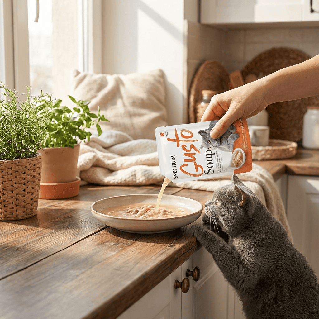 Tüm ırk ve yaş grubundaki kediler için uygun olan Spectrum Gusto Kedi Çorbası, ara öğün olarak veya kuru mamanın üzerine lezzet katmak amacıyla kullanılabilir. Kedinize hem sağlıklı hem de lezzet dolu bir ödül vermek için sepetinize eklemeyi unutmayın!