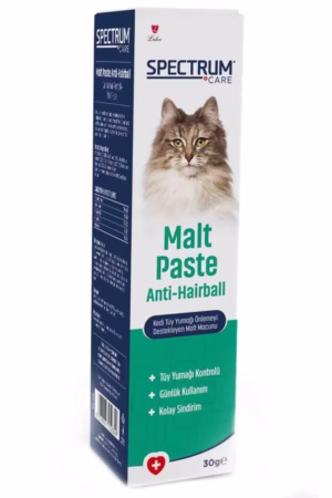 Özellikle tüy dökümü yoğun olan ve kendini sık temizleyen kediler için ideal olan Spectrum Malt Macunu 30gr ile dostunuzun sindirim sistemini koruma altına alın ve ona sağlıklı bir yaşam sunun.