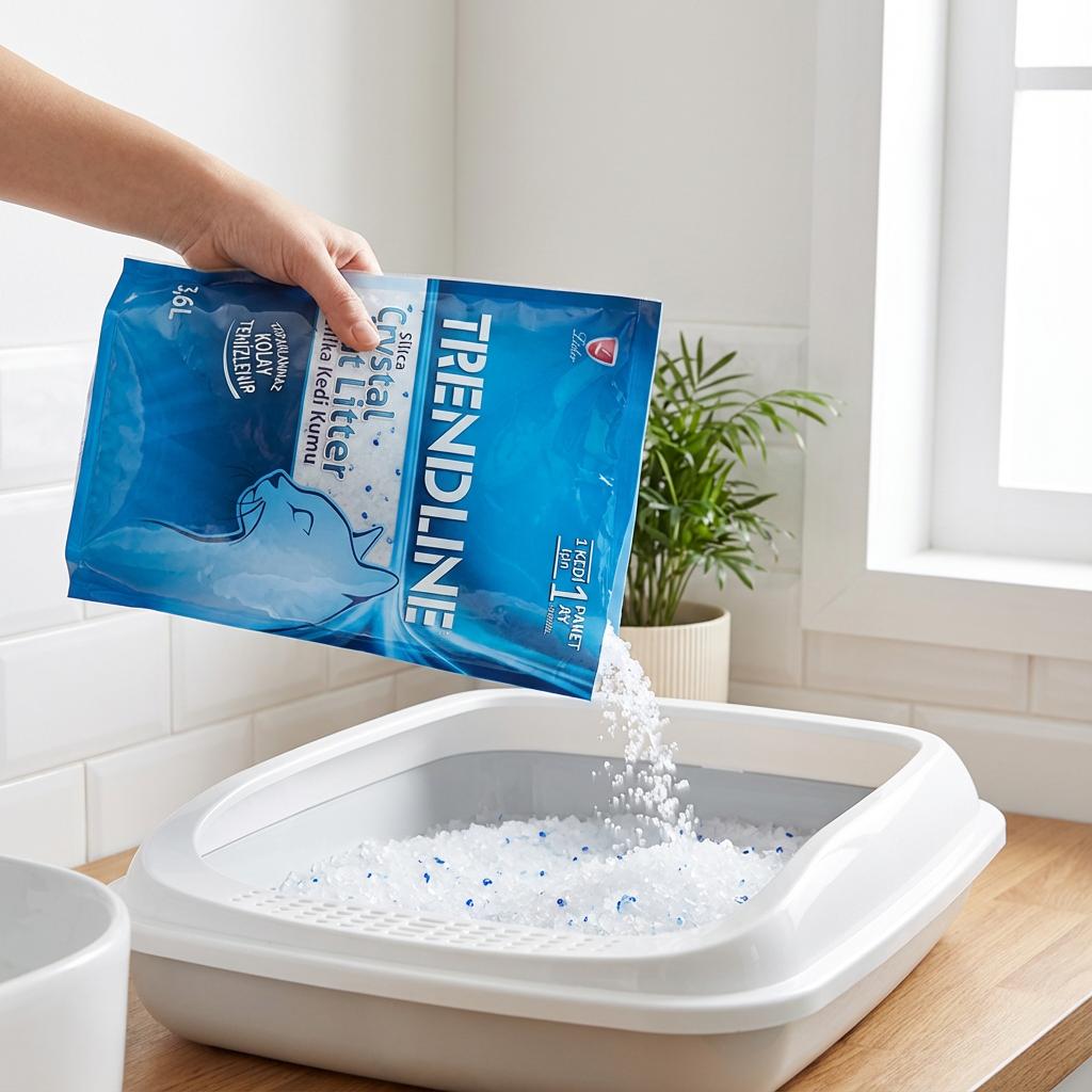 Evinizin hijyeni ve kedinizin mutluluğu için Trendline Silica Kristal Kedi Kumu‘nu güvenle tercih edebilirsiniz.